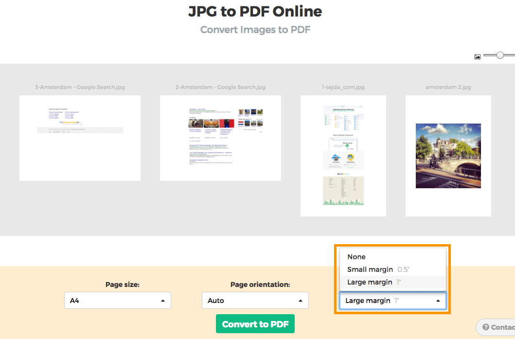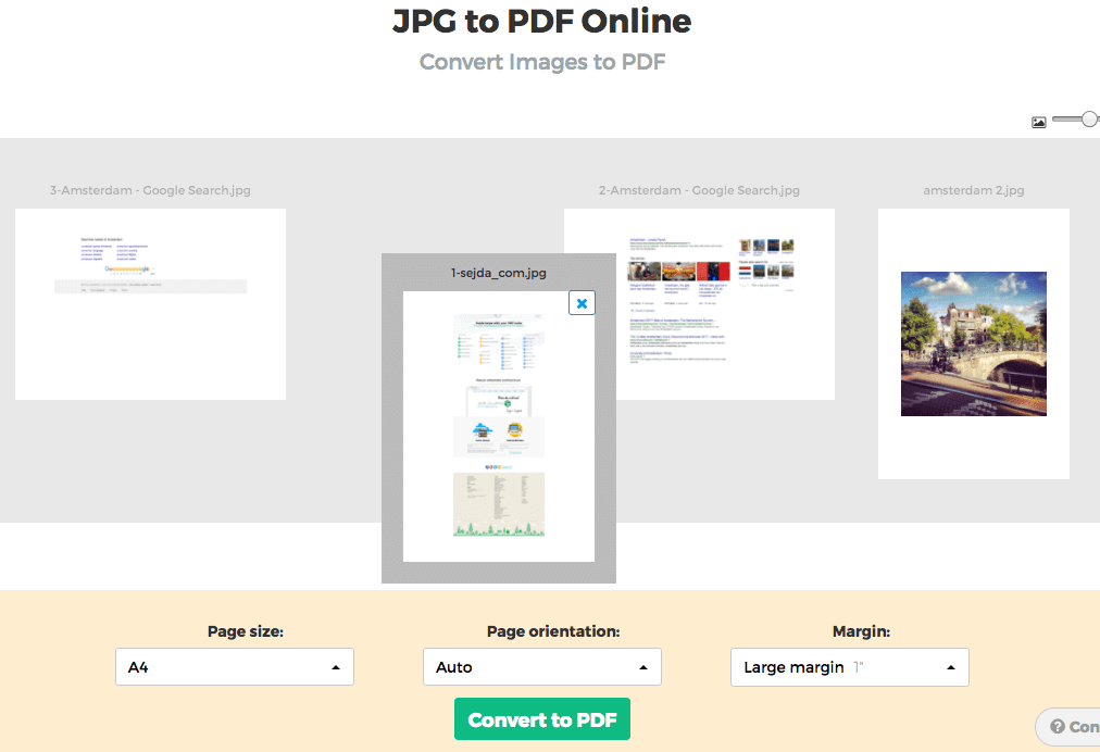 By default images are placed in a A4 sized PDF page. You can choose different page sizes, including the option to have it fit the image size.
