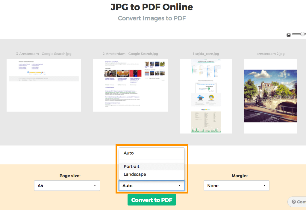 For most users the default auto detected page size will work best. Based on the image dimensions either portrait or landscape is selected. If the image width is larger than its height, then a landscape page orientation is a better fit than portrait.